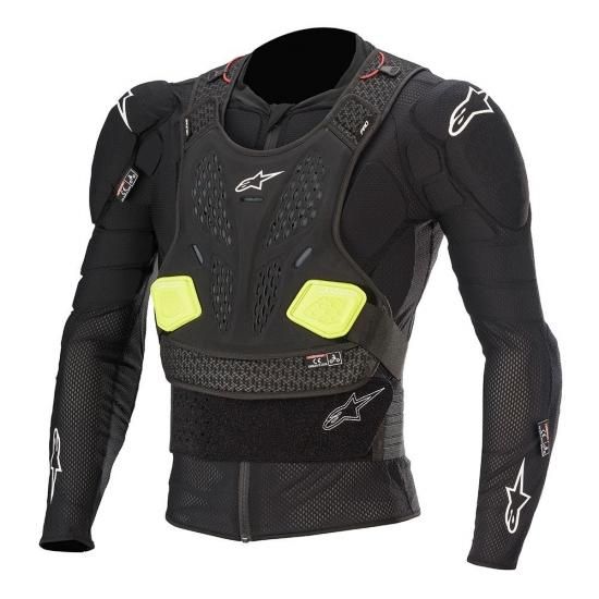 ・肩、肘、胸、背中にプロテクターを備えた、通気性のあるストレッチメッシュ生地で作られています。